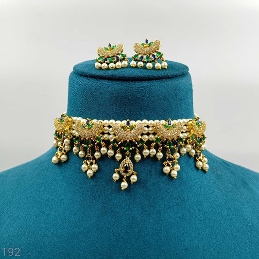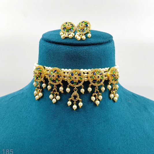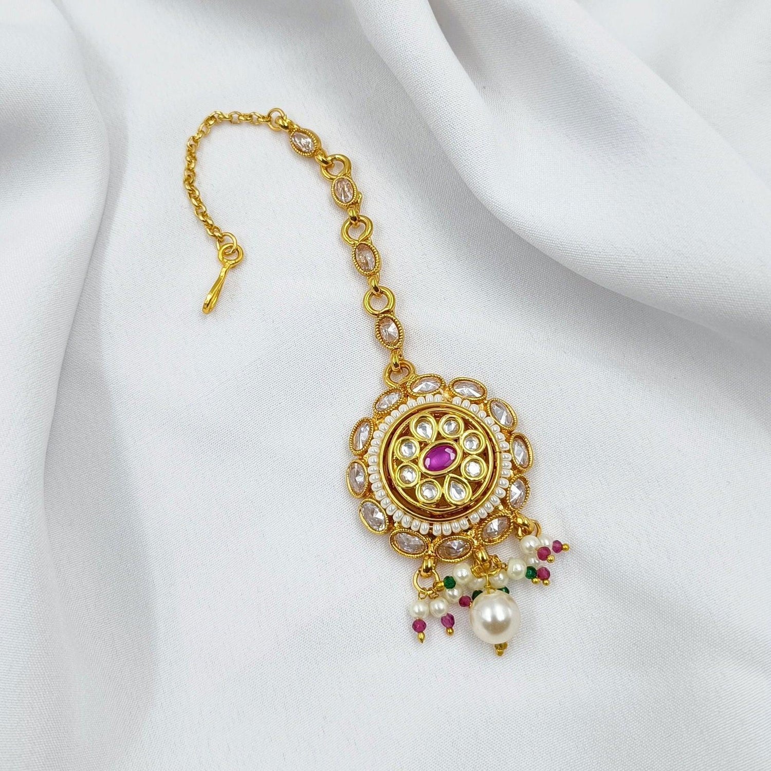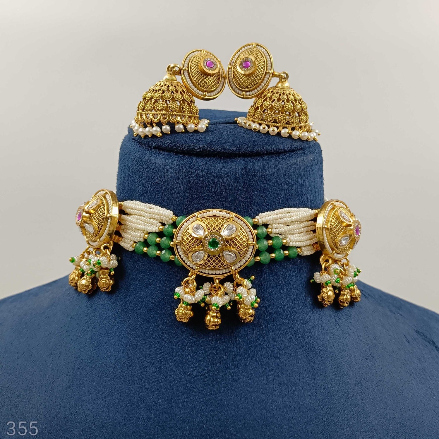 Green Stone with Shiny Pearls Traditional Adjustable Thread Tanmani Shree Radhe Pearls