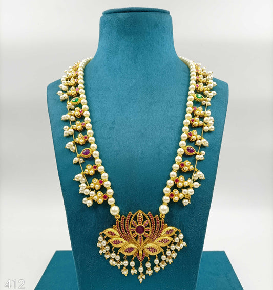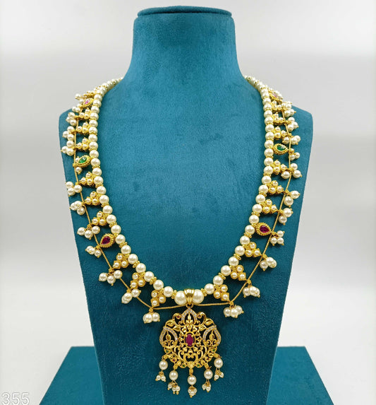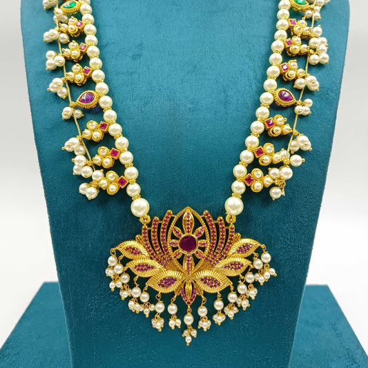 Maharashtrian Pearl Long Ranihaar Set With Earrings
