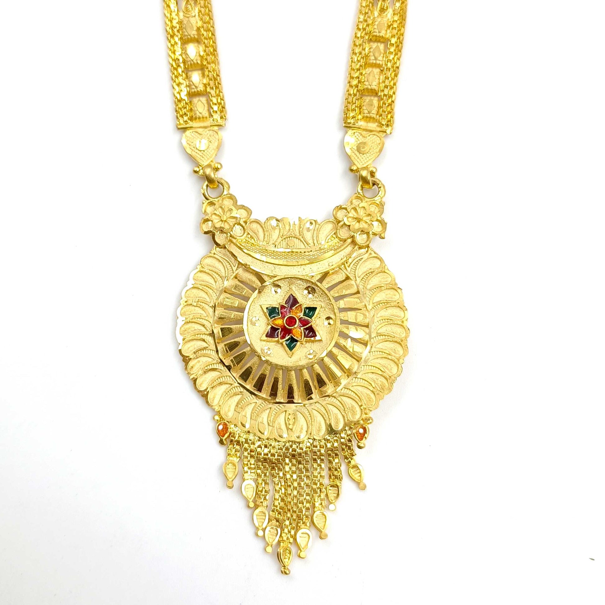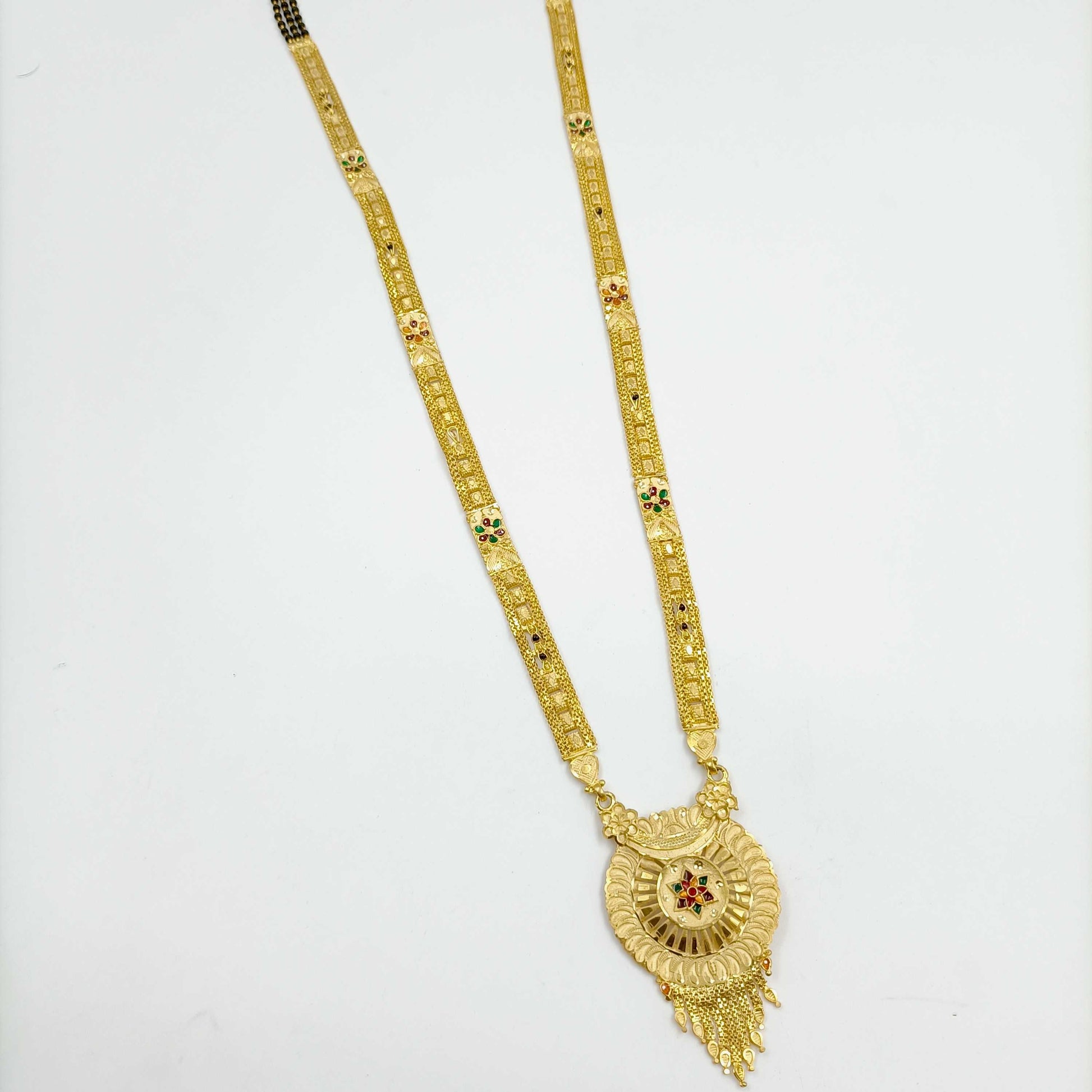 This festive season Shree Radhe Pearls Jewellery brings to you this designer mangalsutra set in classic look. The pendant has attachment of double layer of black beaded chain. It is superior in quality and will be your fashion companion for many years.