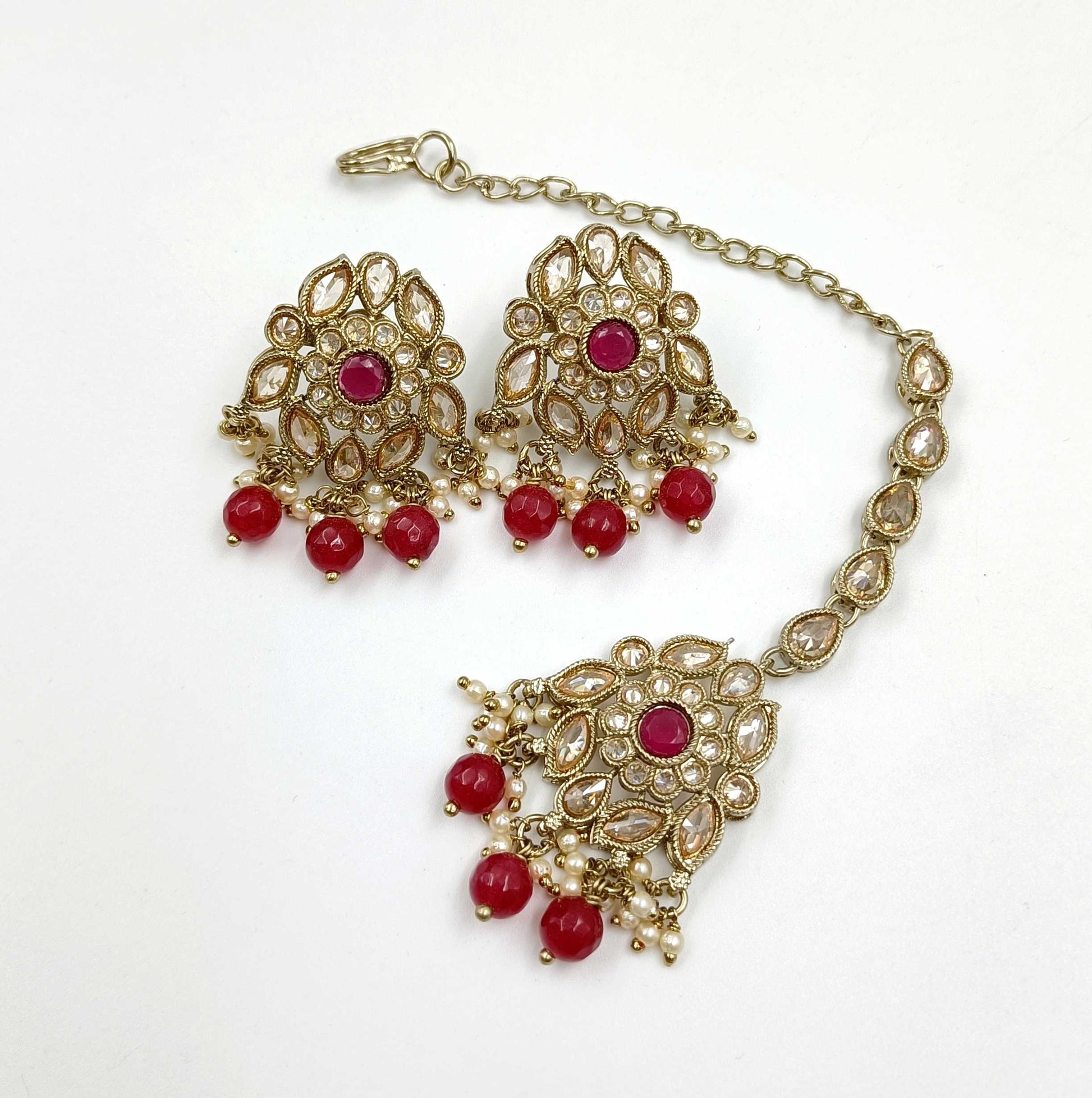 Adorn yourself with this alluring stylish necklace set and create your different style statement. It is embedded with sparkling multi colour stones and woven with attractive multi colour beads in an unbreakable thread. This beautiful set is crafted from golden finish metal and good in quality.
