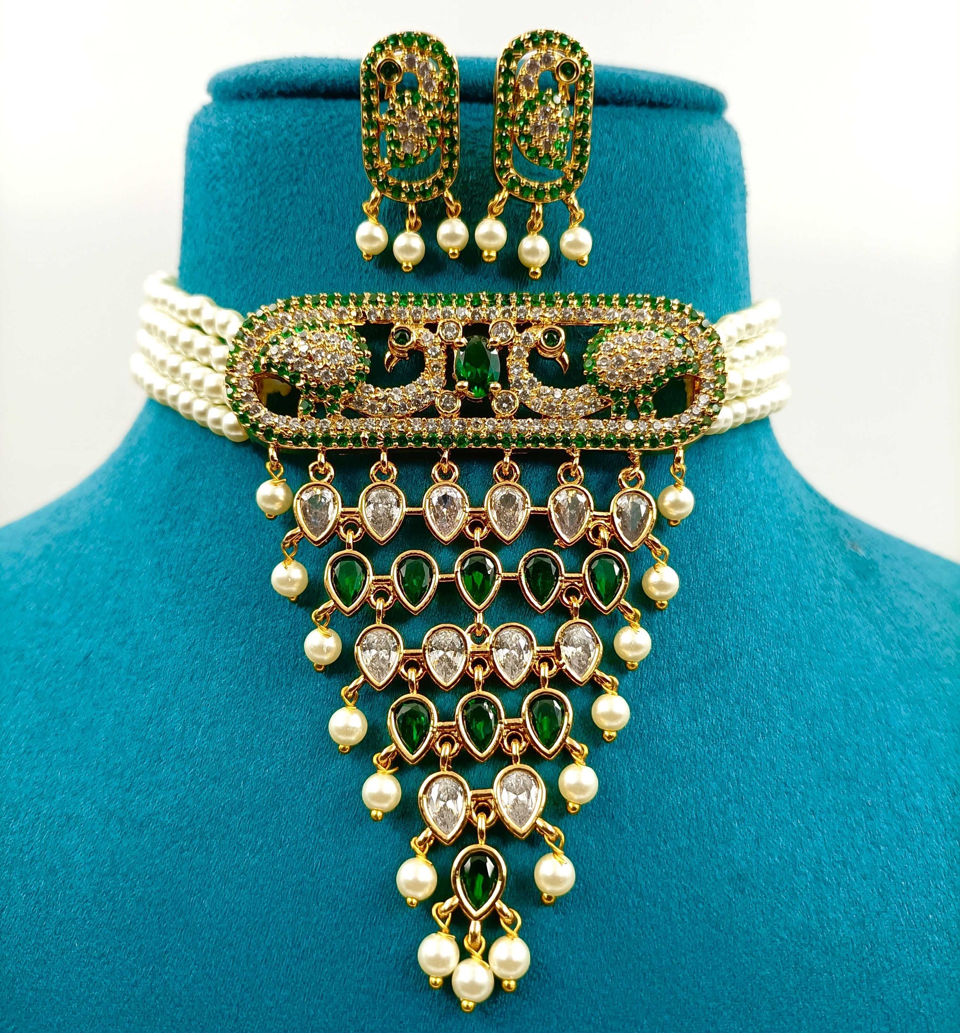 Buy something different for yourself in the form of this stylish pearl Choker set from Shree Radhe Pearls Jewellery. It is studded with sparkling stone and made from golden finish metal. The colour and design of this choker is unique and worth noticing. Grab this necklace and turn many heads towards you.
