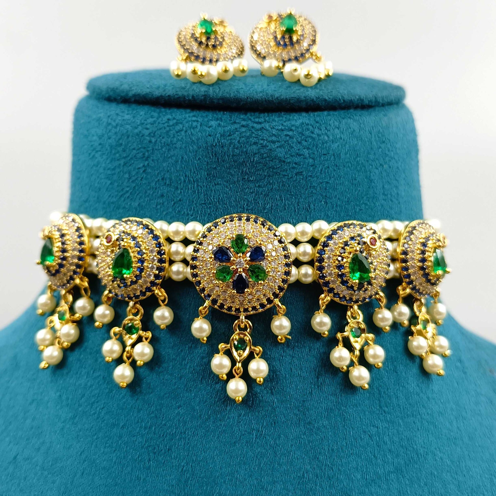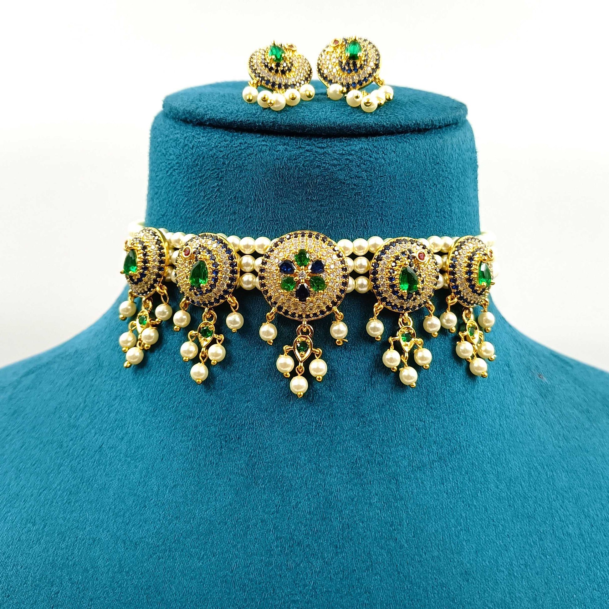 Buy something different for yourself in the form of this stylish pearl Choker set from Shree Radhe Pearls Jewellery. It is studded with sparkling stone and made from golden finish metal. The colour and design of this choker is unique and worth noticing. Grab this necklace and turn many heads towards you.