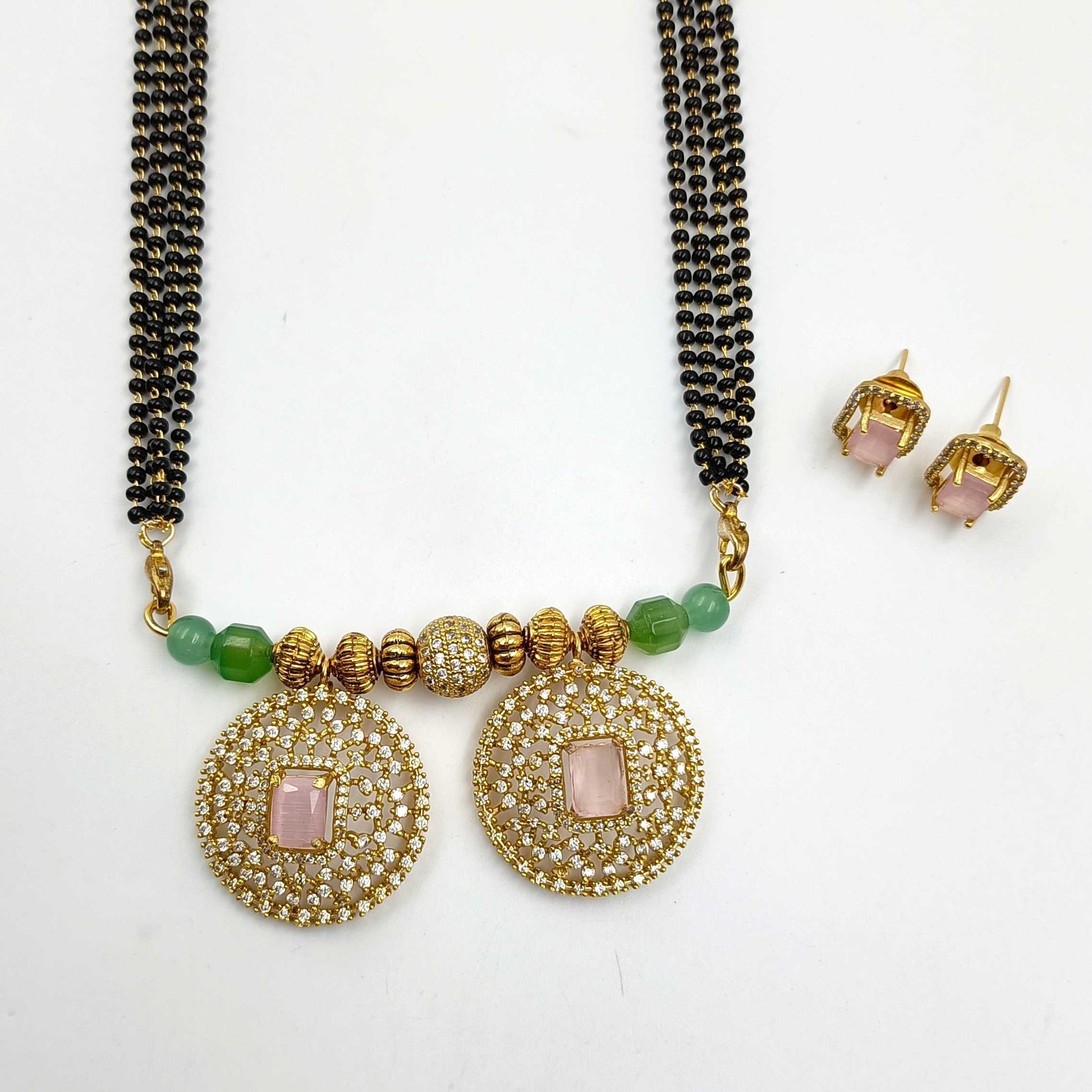 Classy designed this golden finish Mangalsutra from Shree Radhe Pearls Jewellery will appeal to you at very first look. This mangalsutra is superior in quality and will be your fashion companion for many years. It comes with stone along with golden beads with lots of compliments.