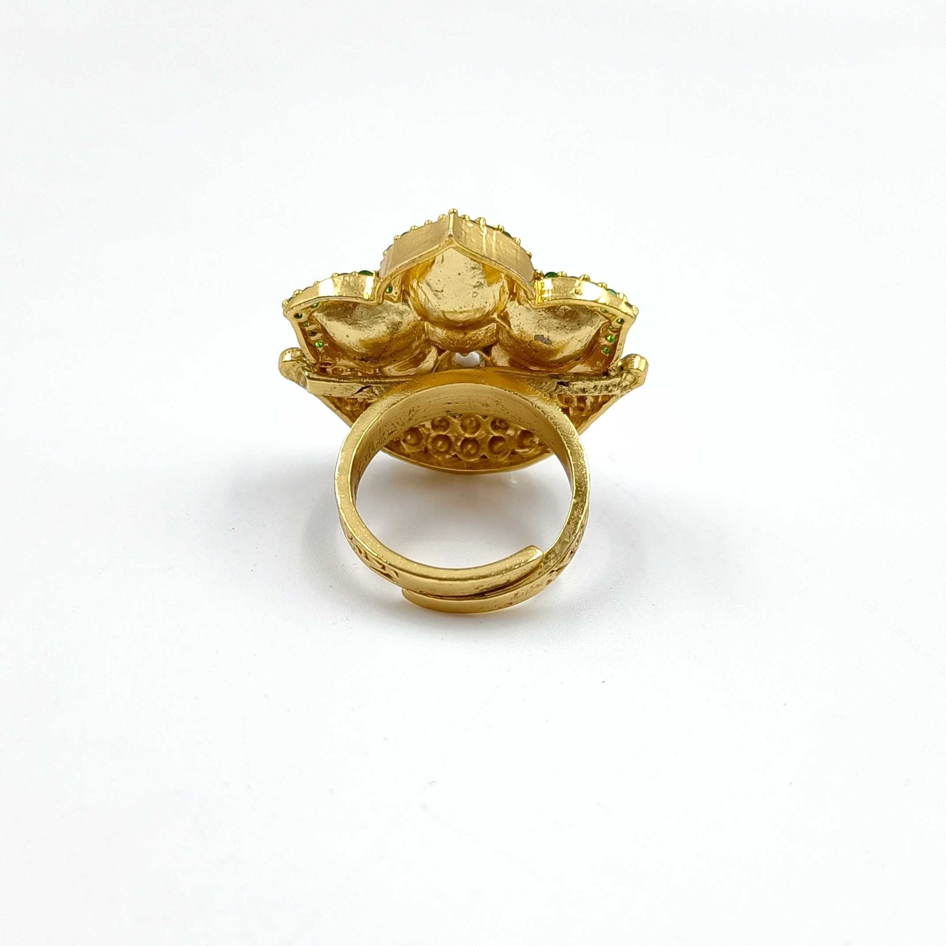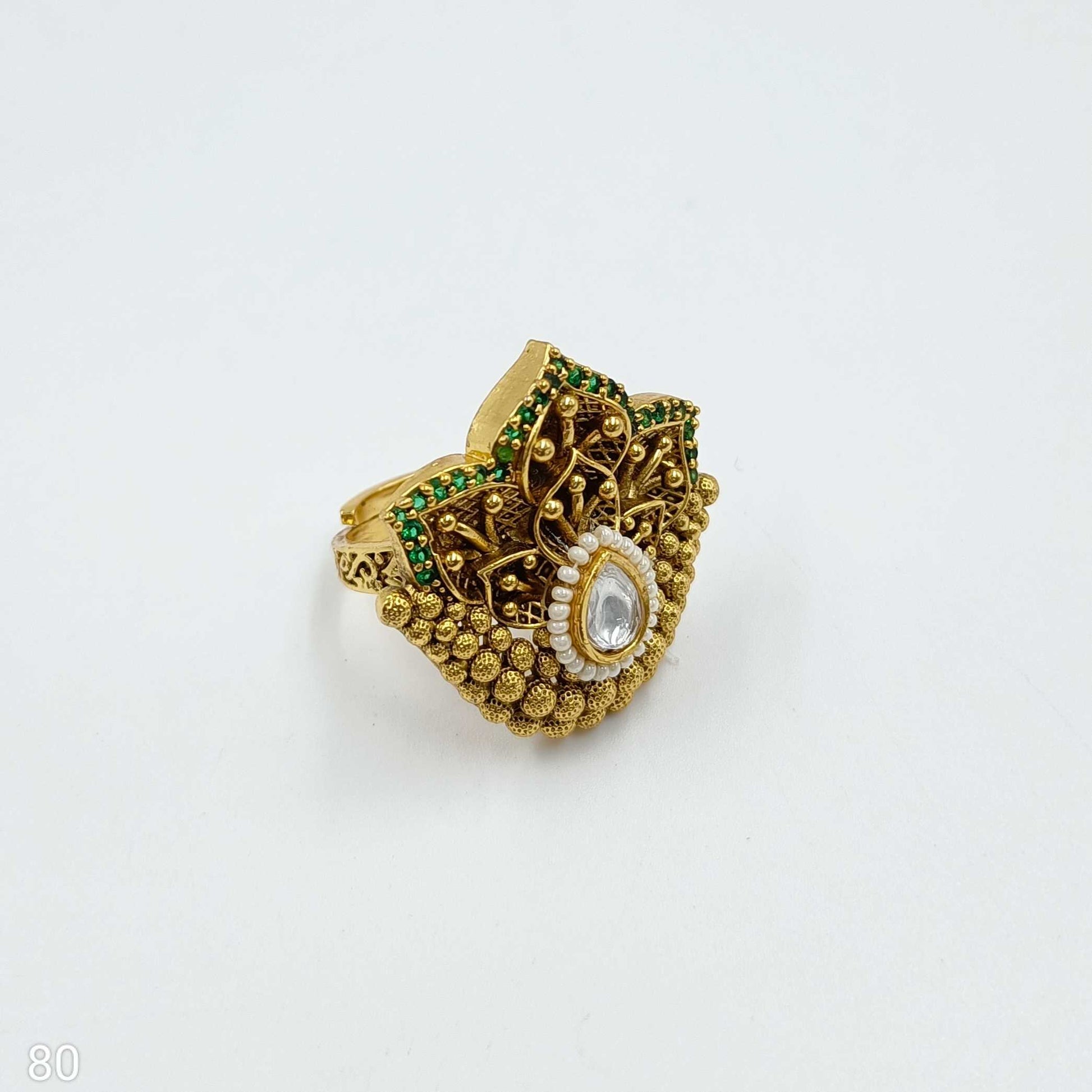 Finger Rings Adjustable Round Antique Golden Finish Adjustable Finger Rings...... Antique Golden Finish Finger Ring,Silver & copper based finger ring with stones delightfully crafted design & colour combination which will go with any outfit. Matchable with Gold jewellery. Round golden finish finger ring. Traditional wear Finger Ring Antique Finish