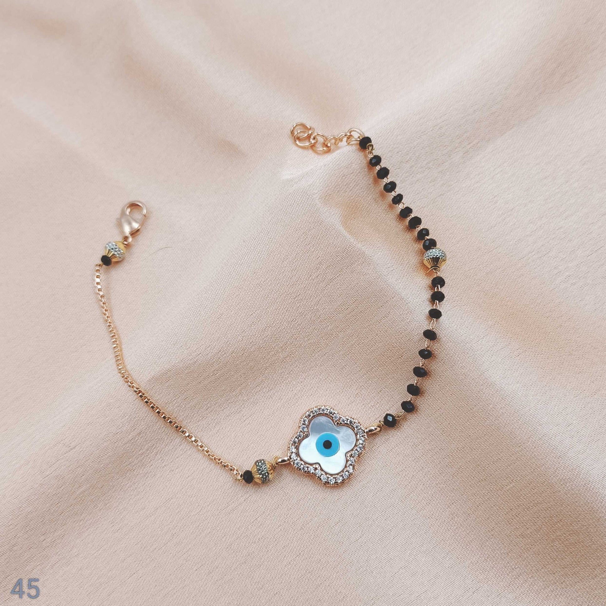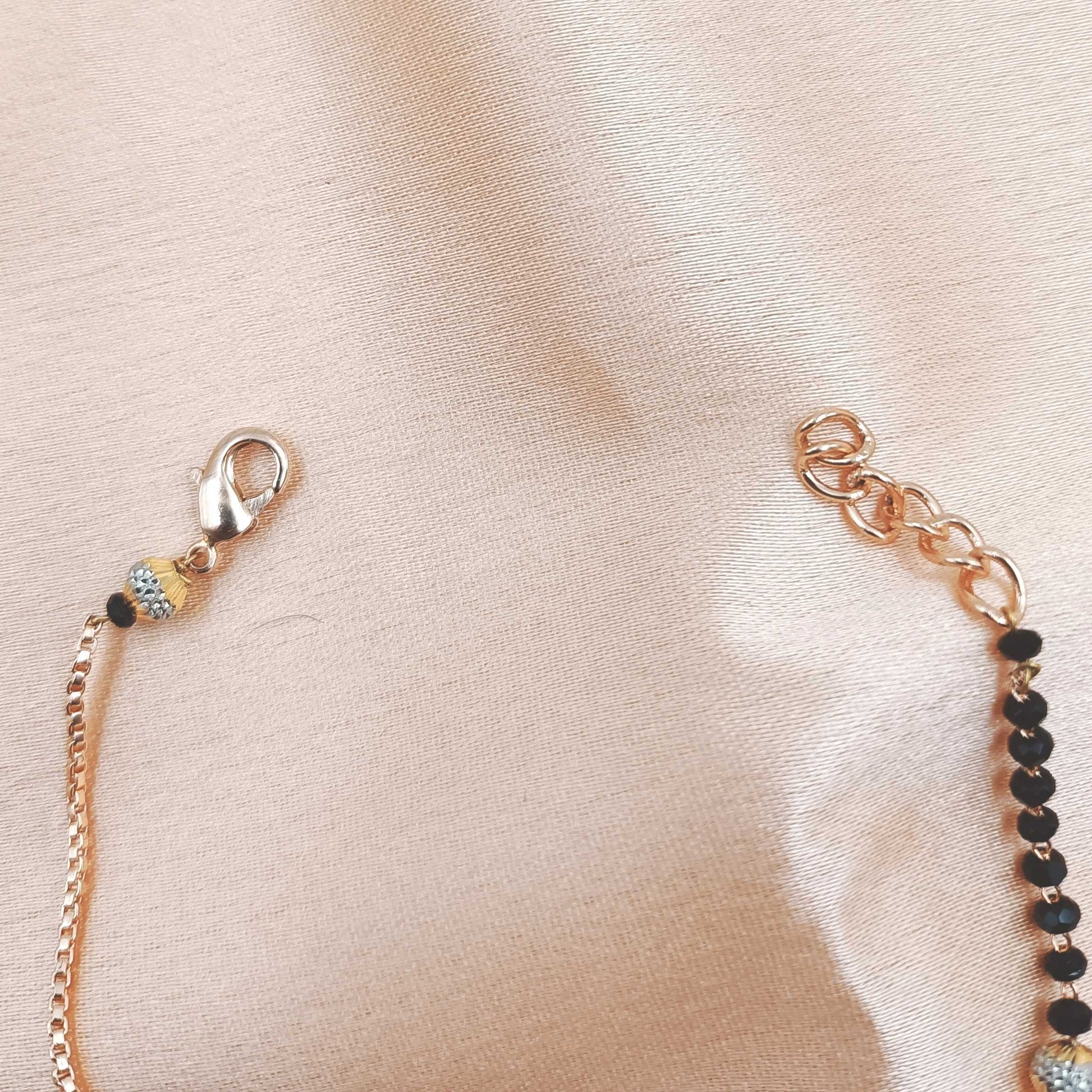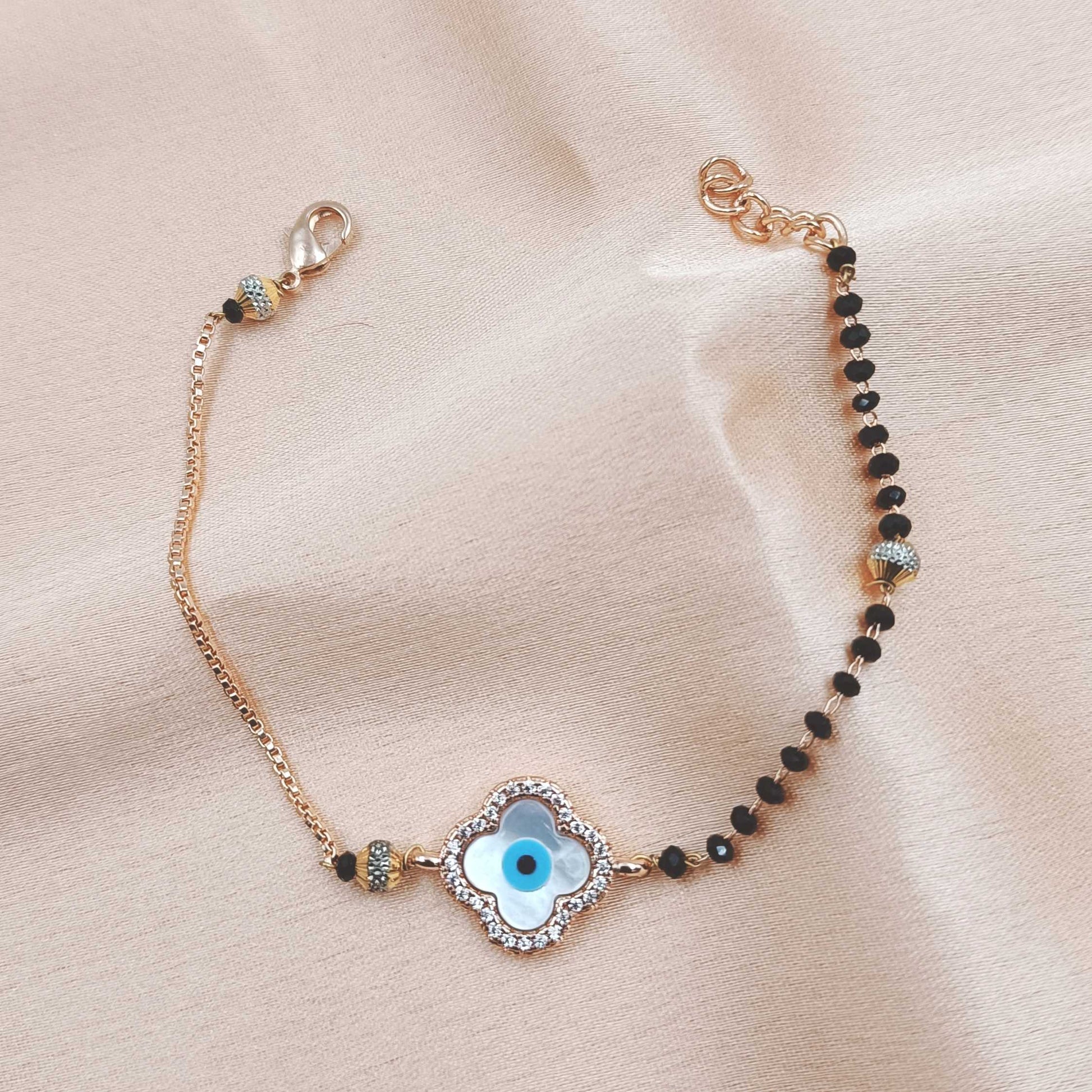 Checkout this beautiful evil eye designer mangalsutra bracelet from Shree Radhe Pearls Jewellery. which is truly very attractive. It is made from golden finish metal. It is good in quality and skeen-friendly as well.