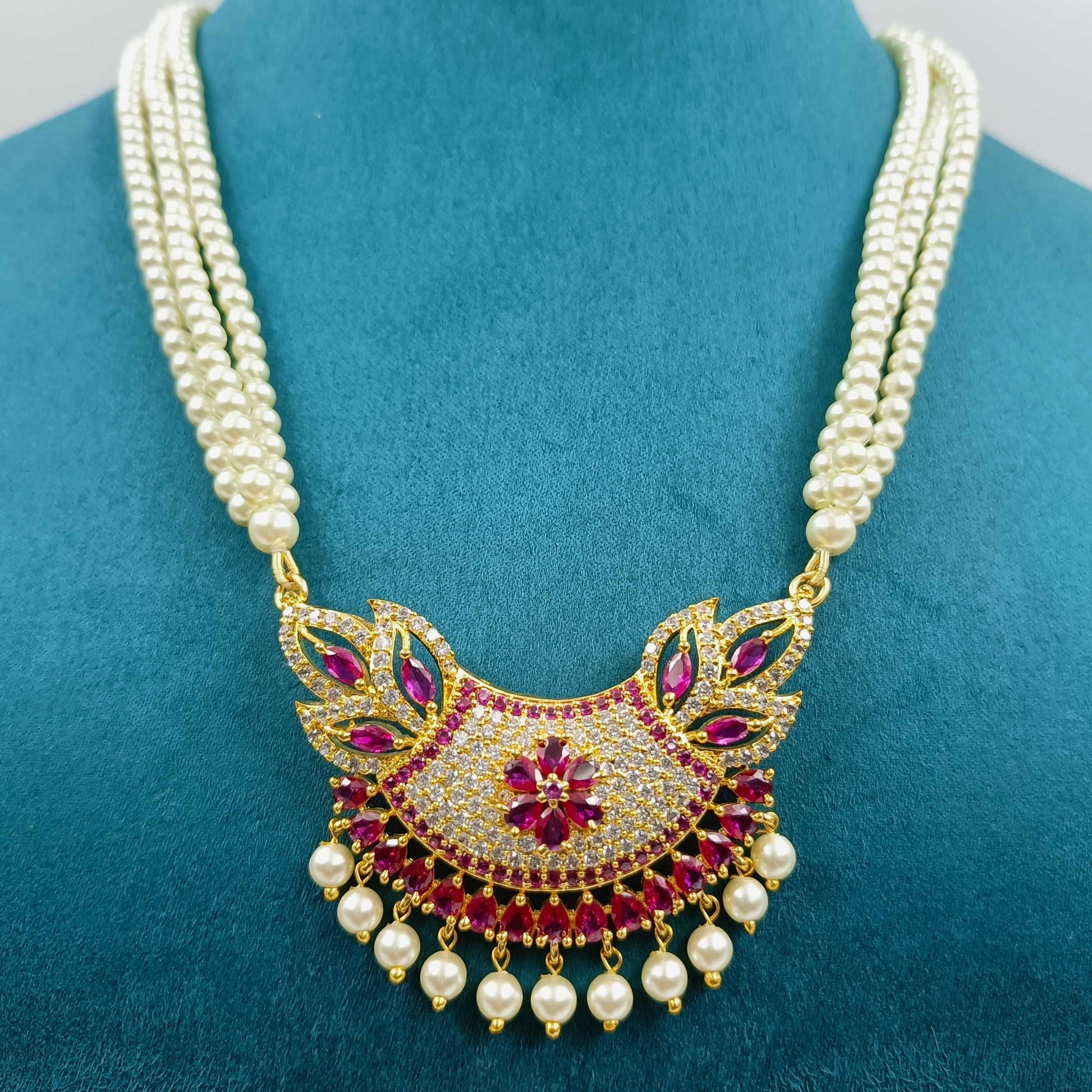 Have a look at this beautiful pearl beads necklace set from Shree Radhe Pearls Jewellery which is perfect combination of class and elegance. It is studded and feature flawless work on metal surface. This necklace is woven with decorative beads along with pearl beads.