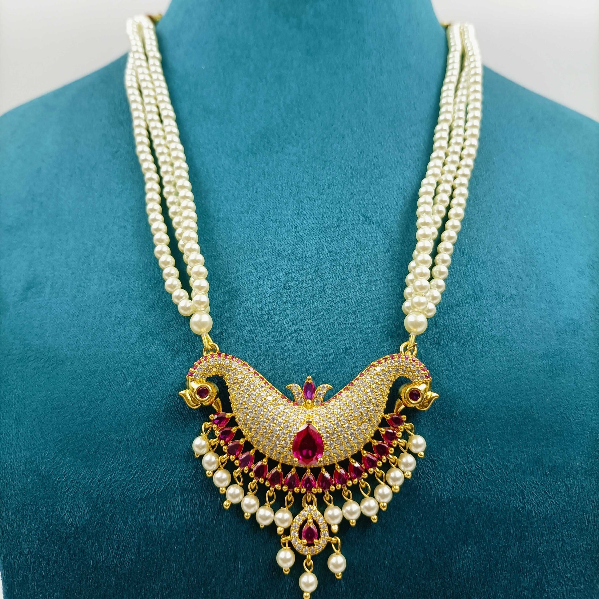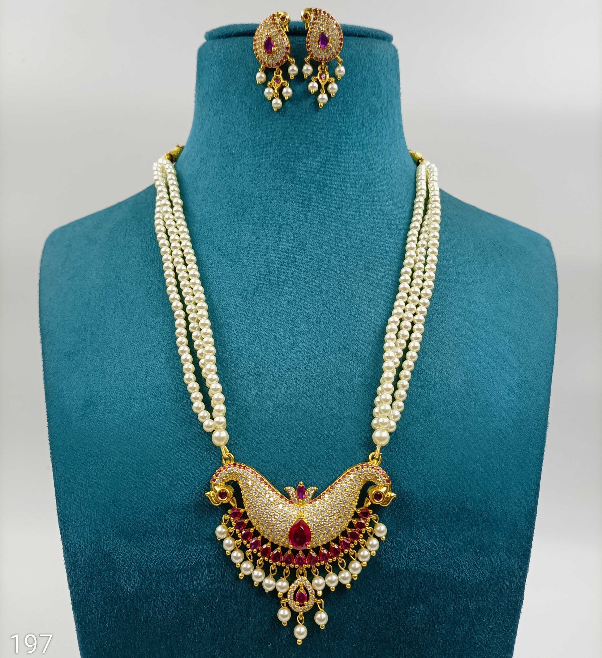 Have a look at this beautiful pearl beads necklace set from Shree Radhe Pearls Jewellery which is perfect combination of class and elegance. It is studded and feature flawless work on metal surface. This necklace is woven with decorative beads along with pearl beads.