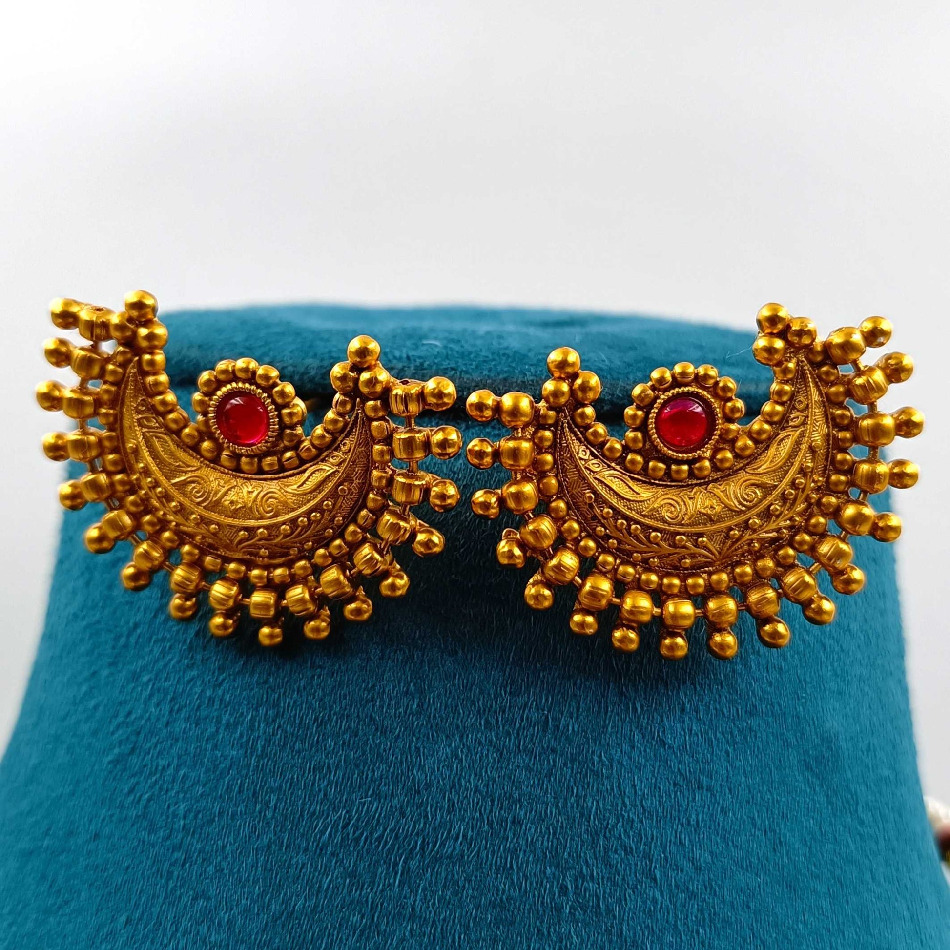 Adorn your neckline with this designer antique finish necklace which is perfect blend of class and elegance. It is embedded with Pink stone along with wonderfully intricate design made from antique finish silver and copper mixed base metal. This designer necklace set will fetch you lots of compliments from onlookers for your amazing choice.
