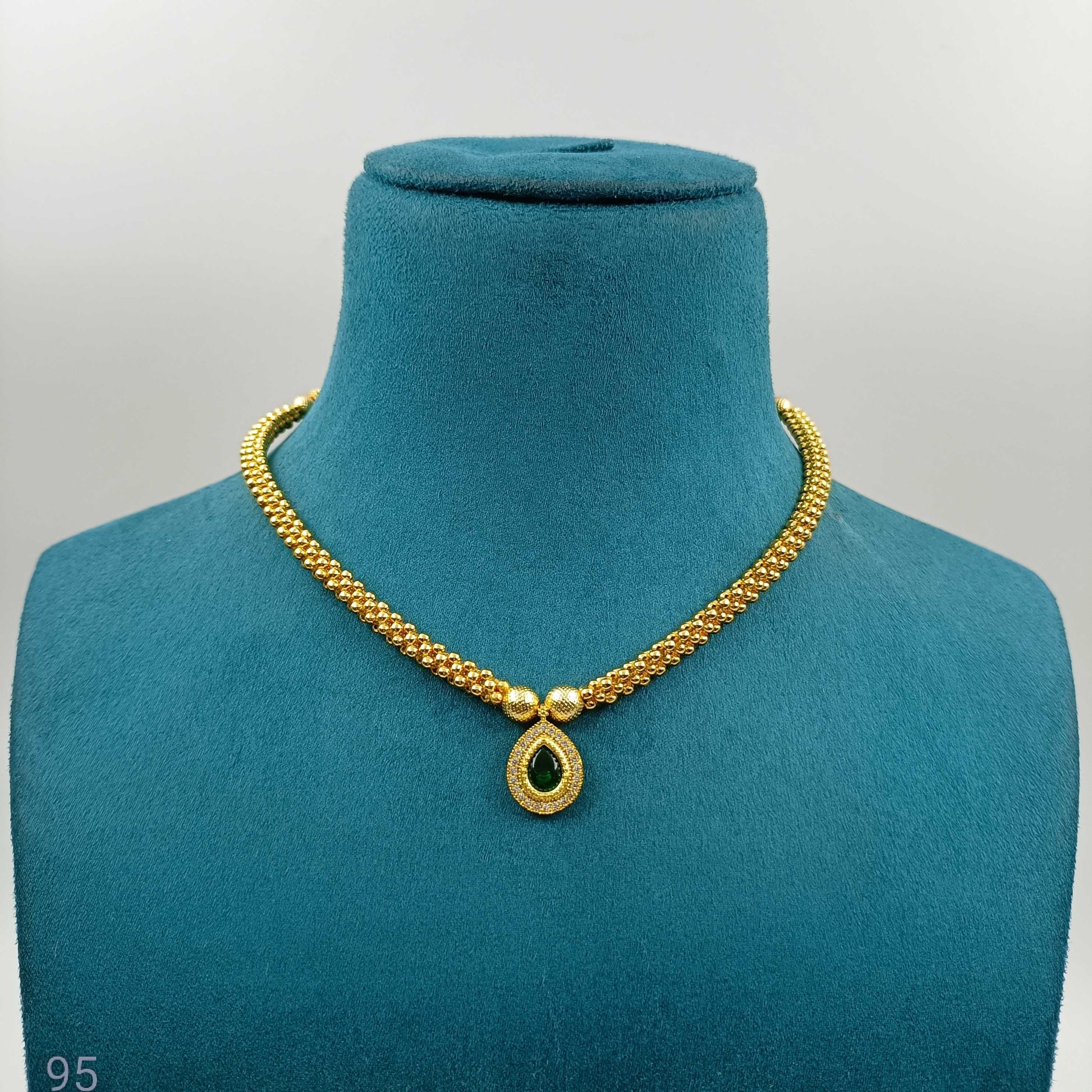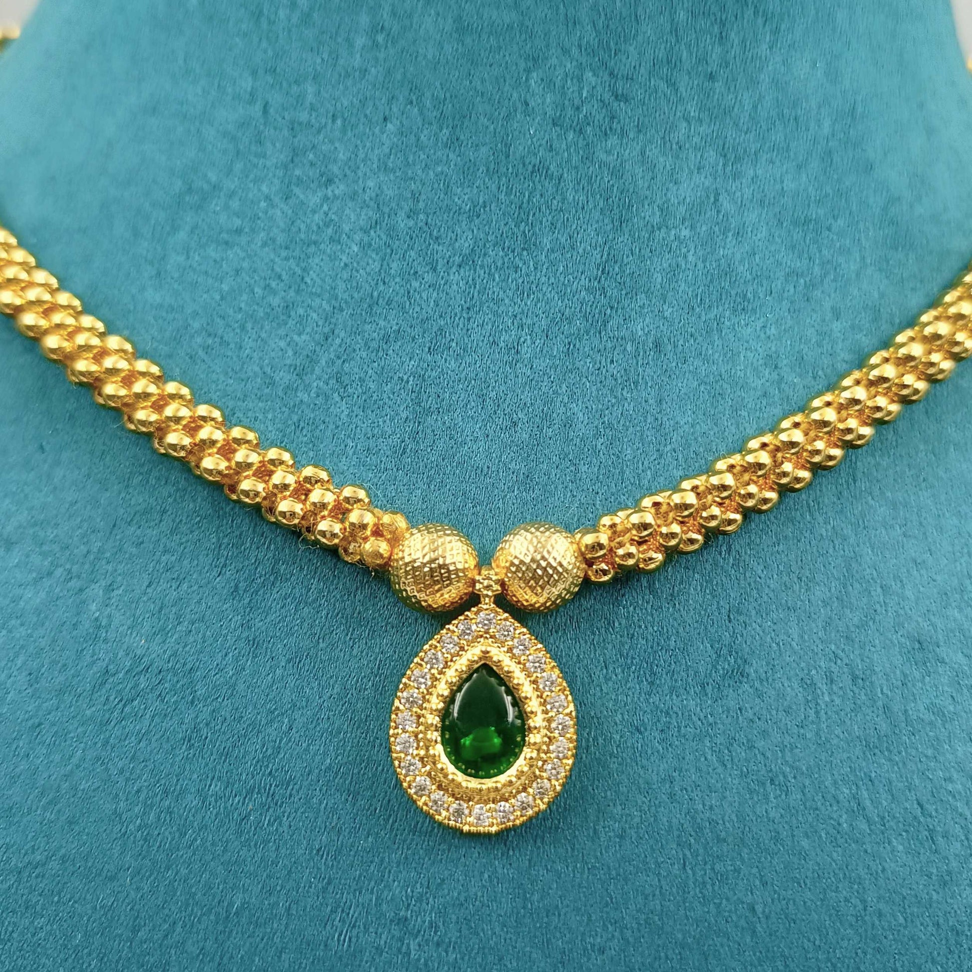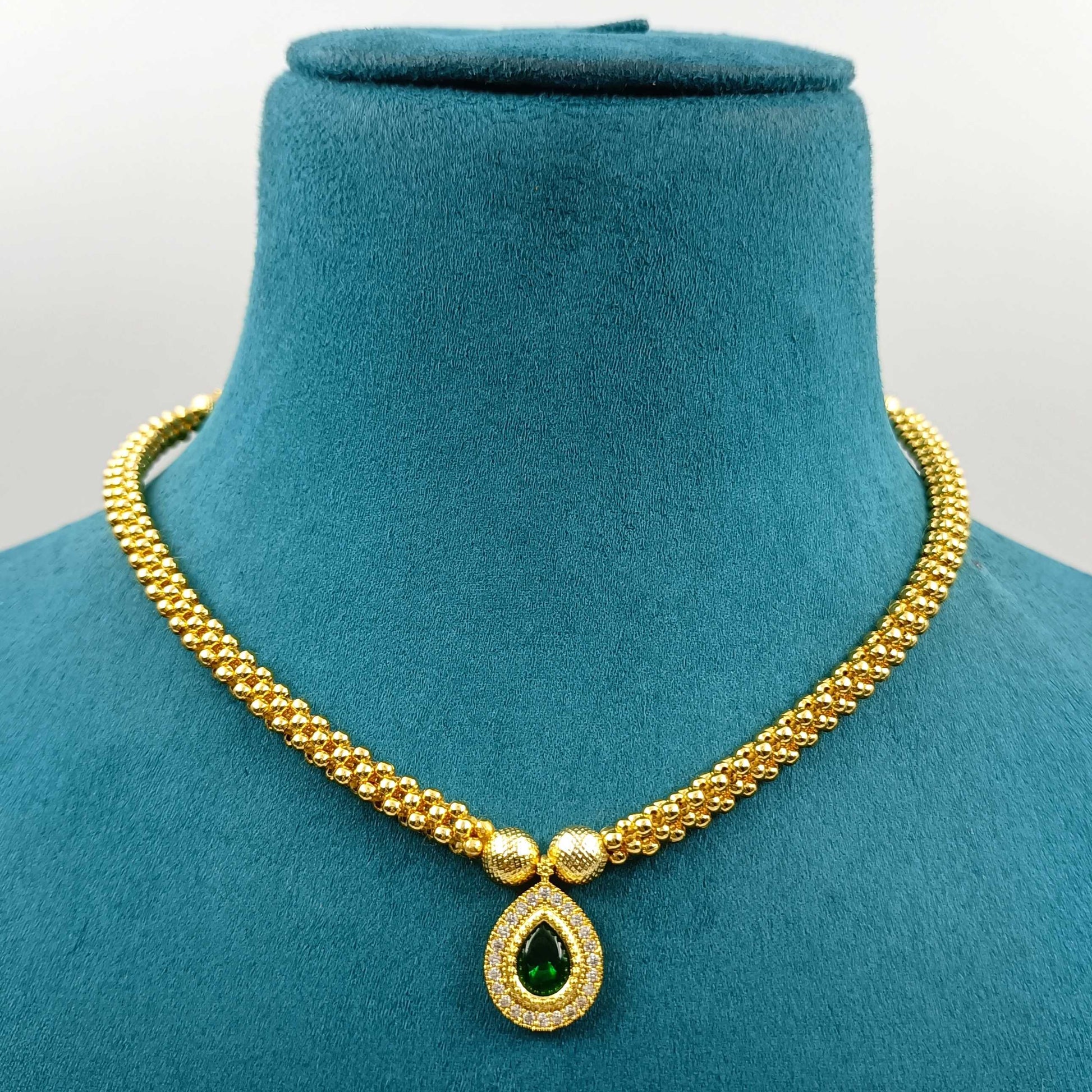 This flawless golden beads Necklace will give you queenly look. This adorable necklace is made up of good quality metal and has golden finish. It has small colour sparkling stone embedded in it. And is woven with golden beads which steals the attraction of people. Fetch a lot of compliments by wearing this fancy necklace.