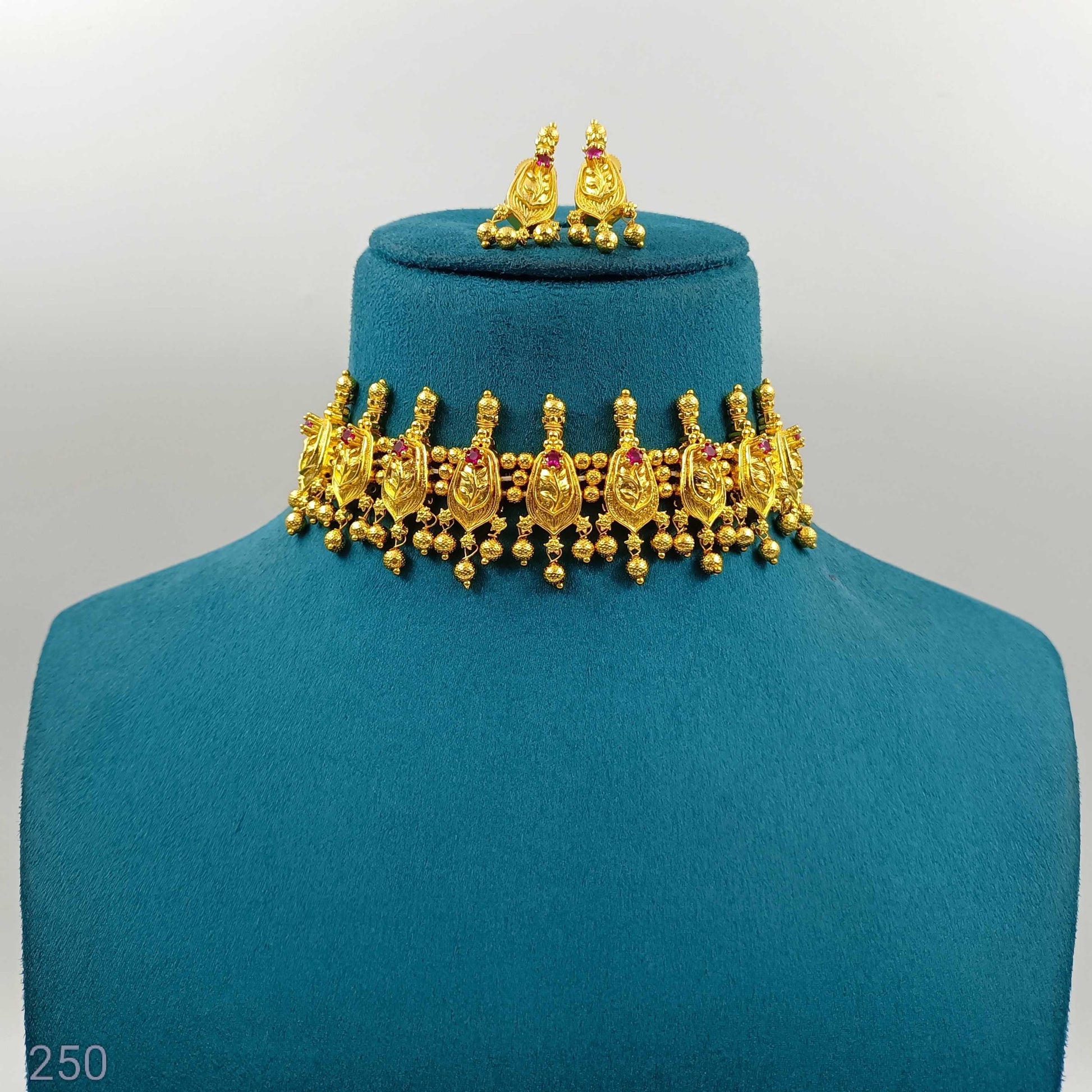 This flawless golden beads Necklace will give you queenly look. This adorable necklace is made up of good quality metal and has golden finish. It has small colour sparkling stone embedded in it. And is woven with golden beads which steals the attraction of people. Fetch a lot of compliments by wearing this fancy necklace.